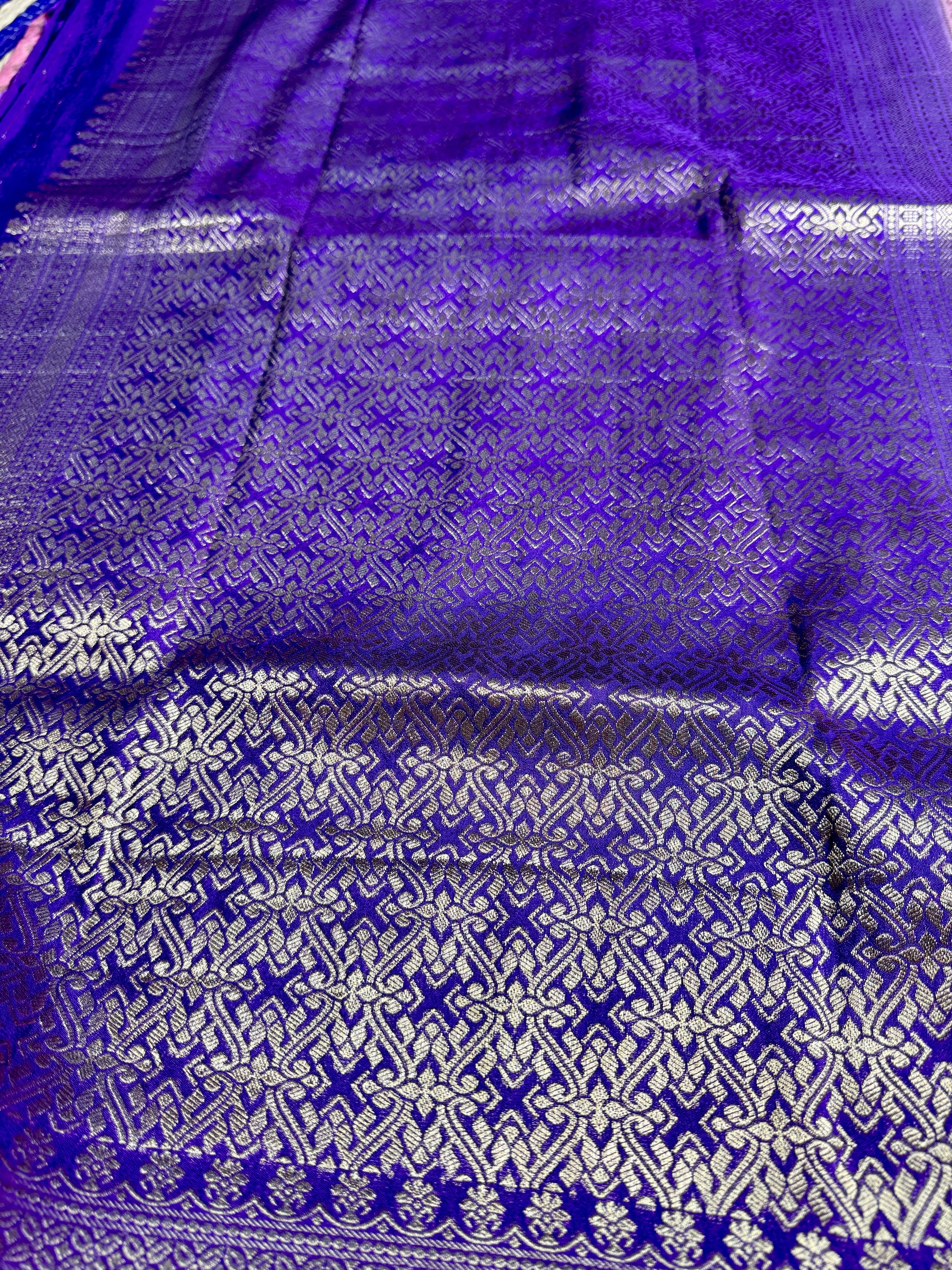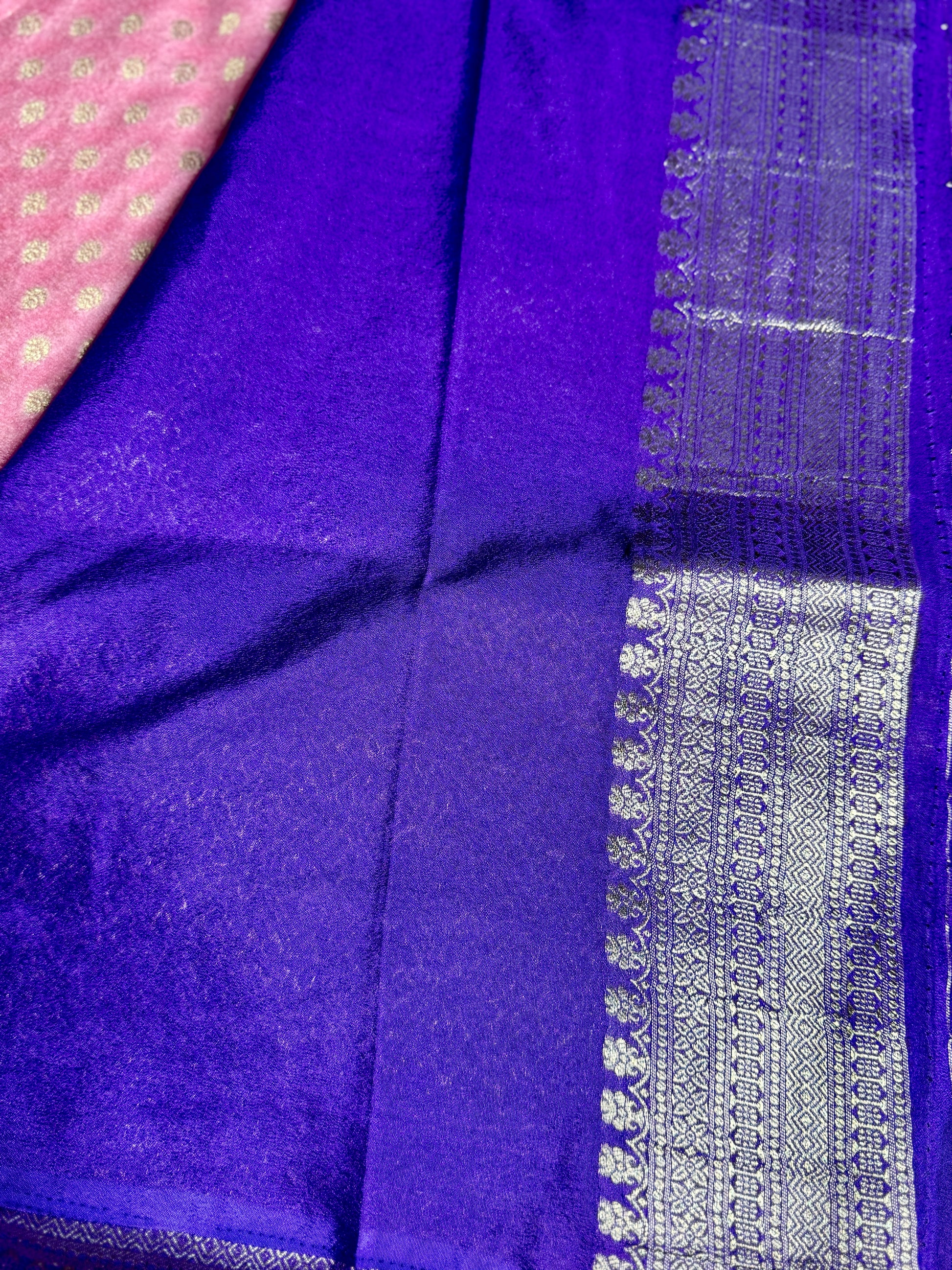 Baby Pink Khadi Banarasi Silk saree with Contrast border