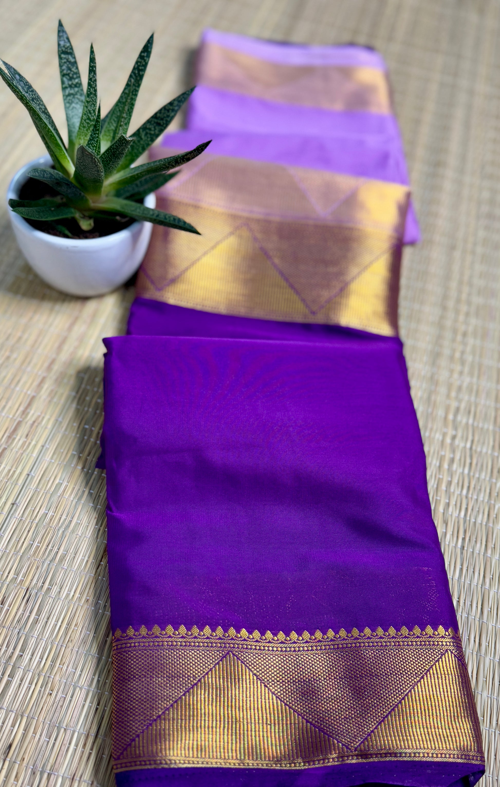 Purple & Lavender Half-and-Half Mysore Silk Crepe Crepe Saree