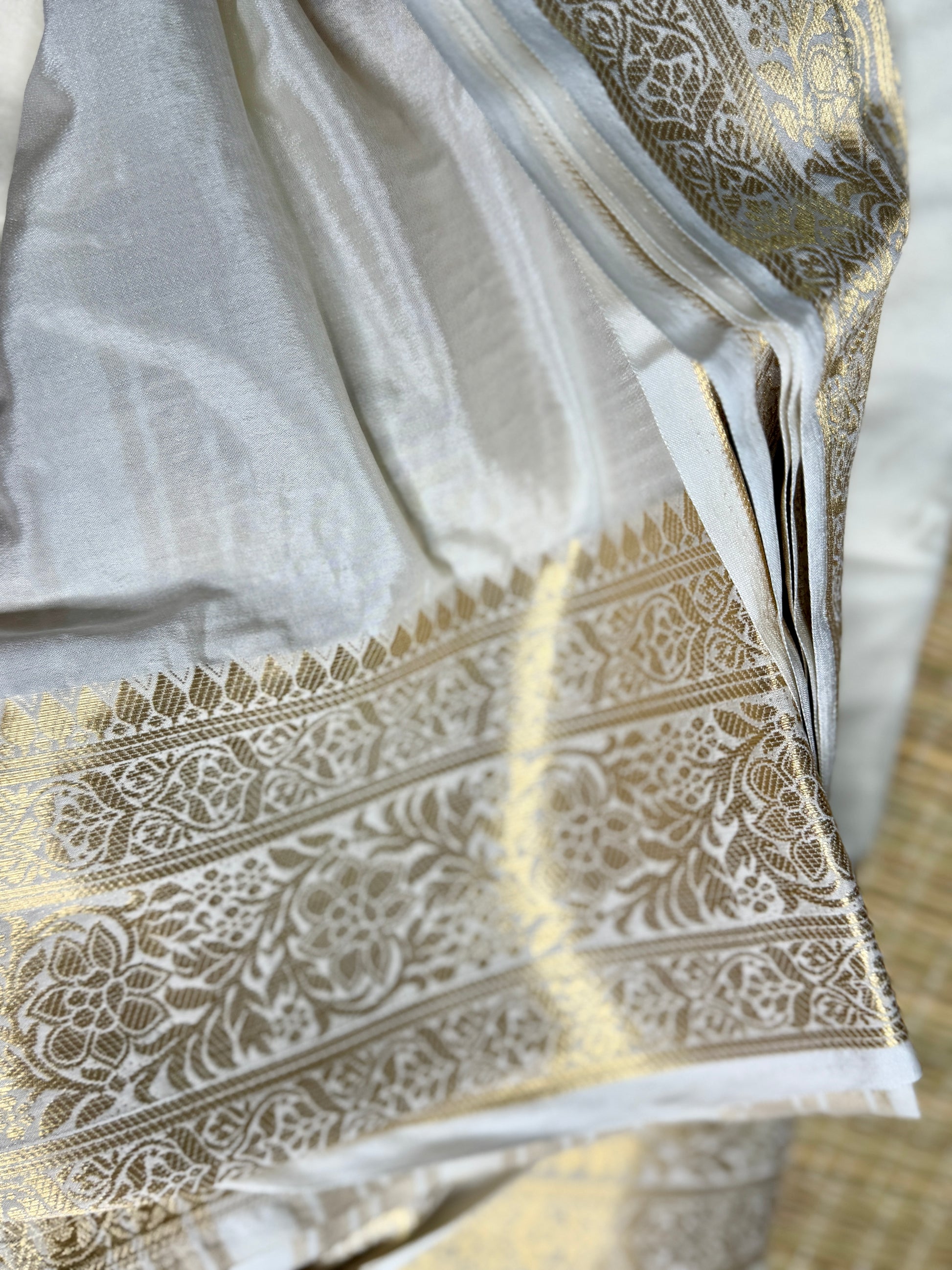 White Mysore Silk Crepe Saree with Intricate Thread Embroidery