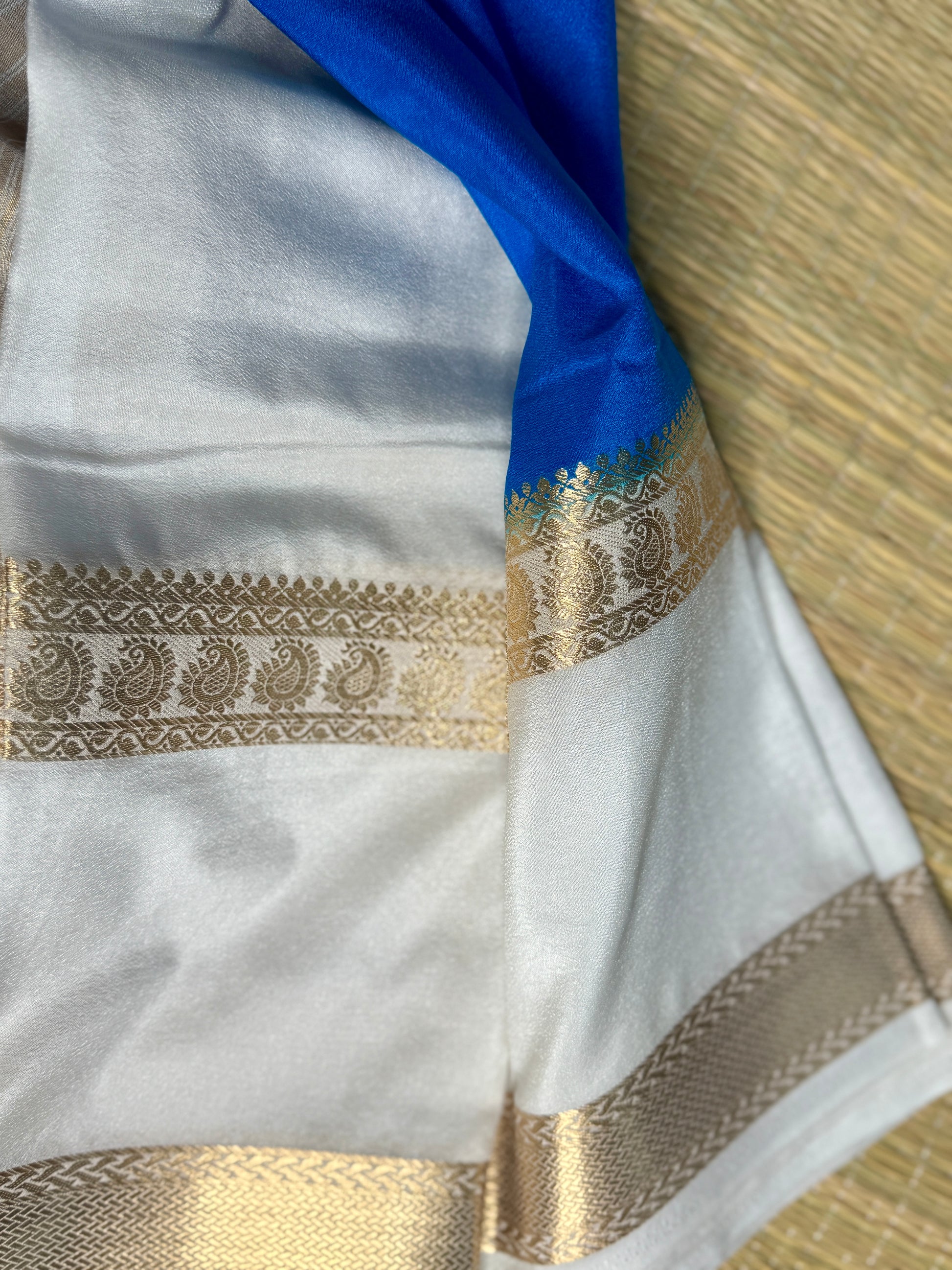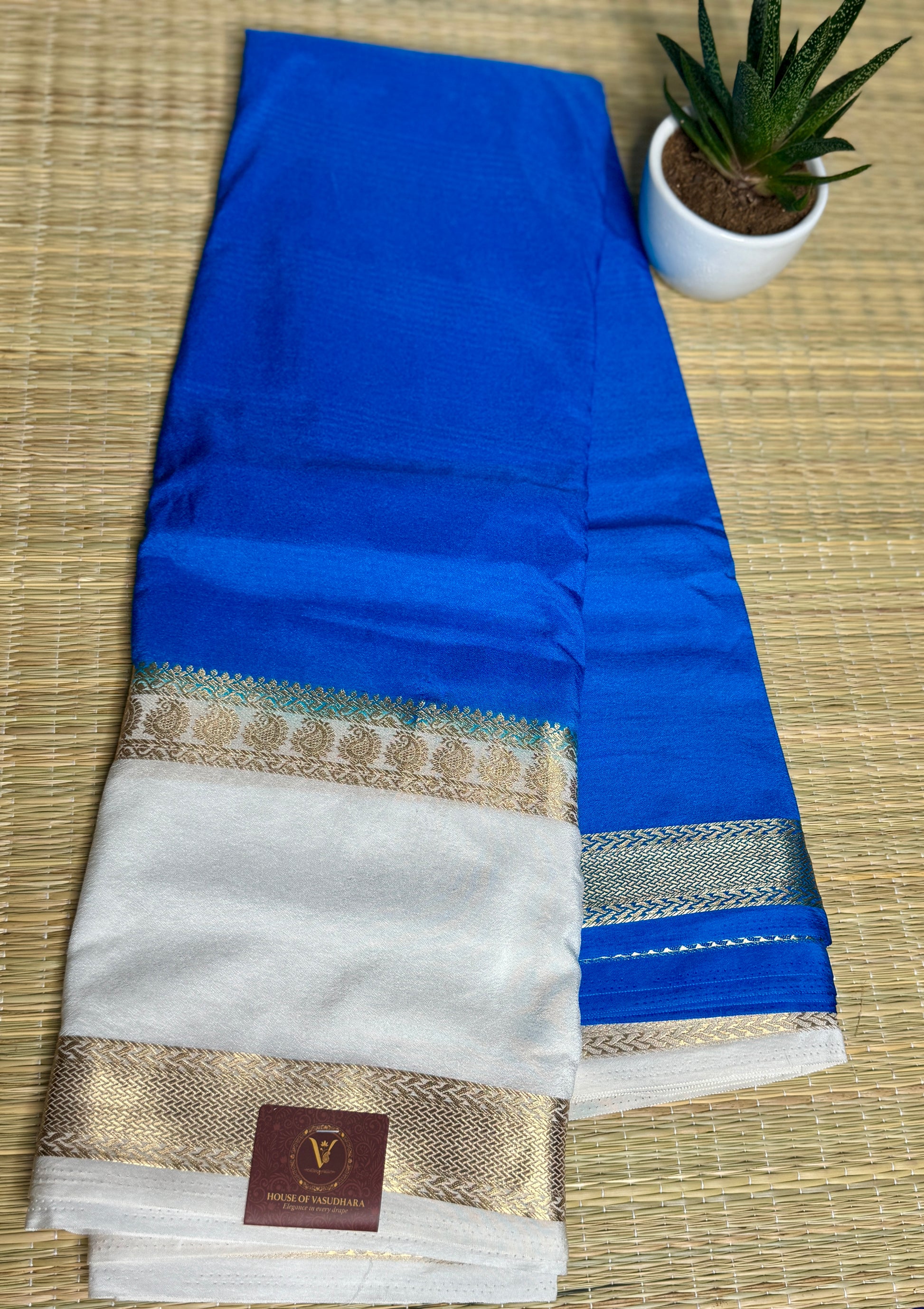 Blue Semi Mysore silk crepe with Soft Cream Bentex border