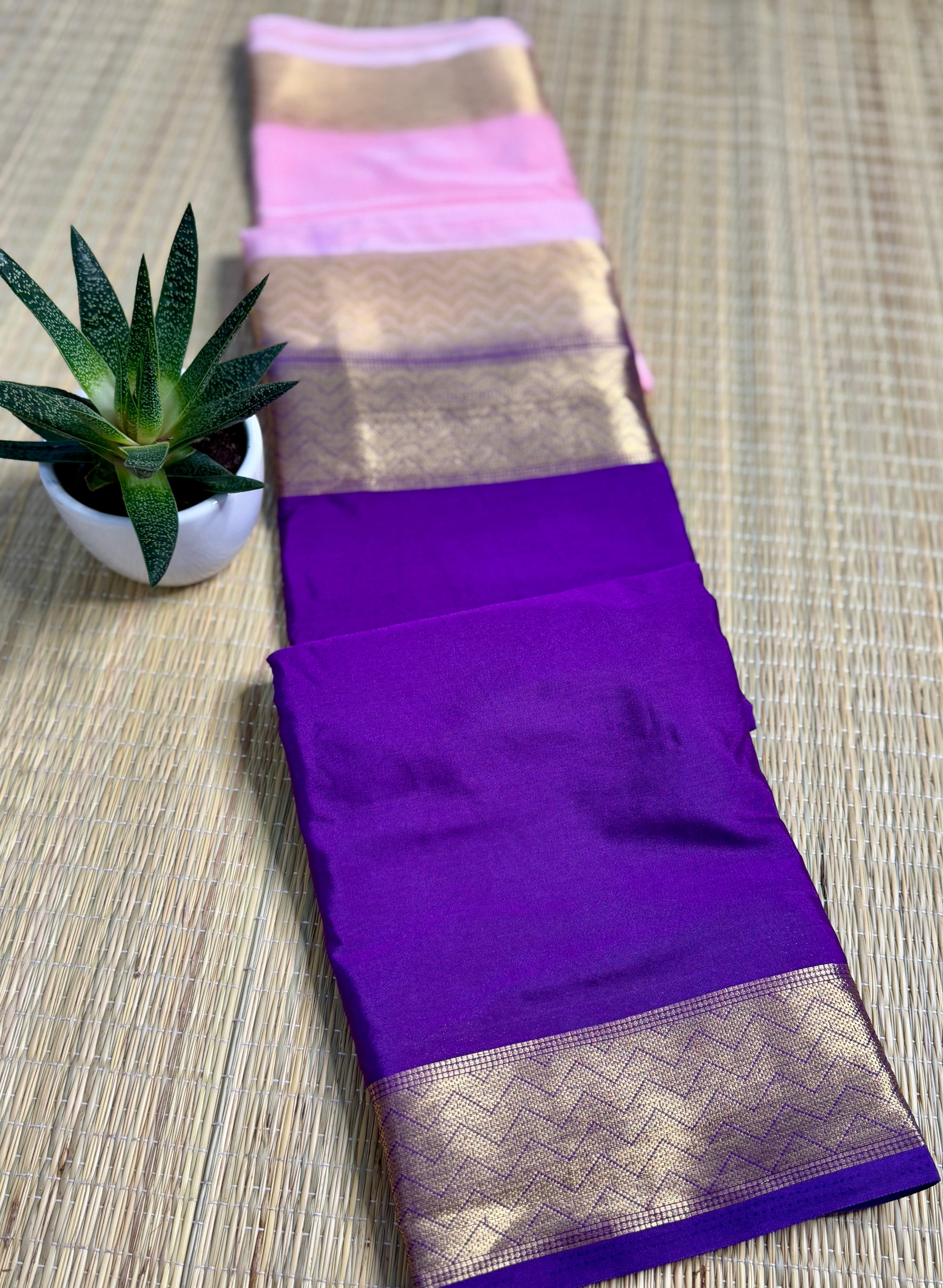 Baby Pink & Purple Half-and-Half Mysore Silk Crepe Crepe Saree