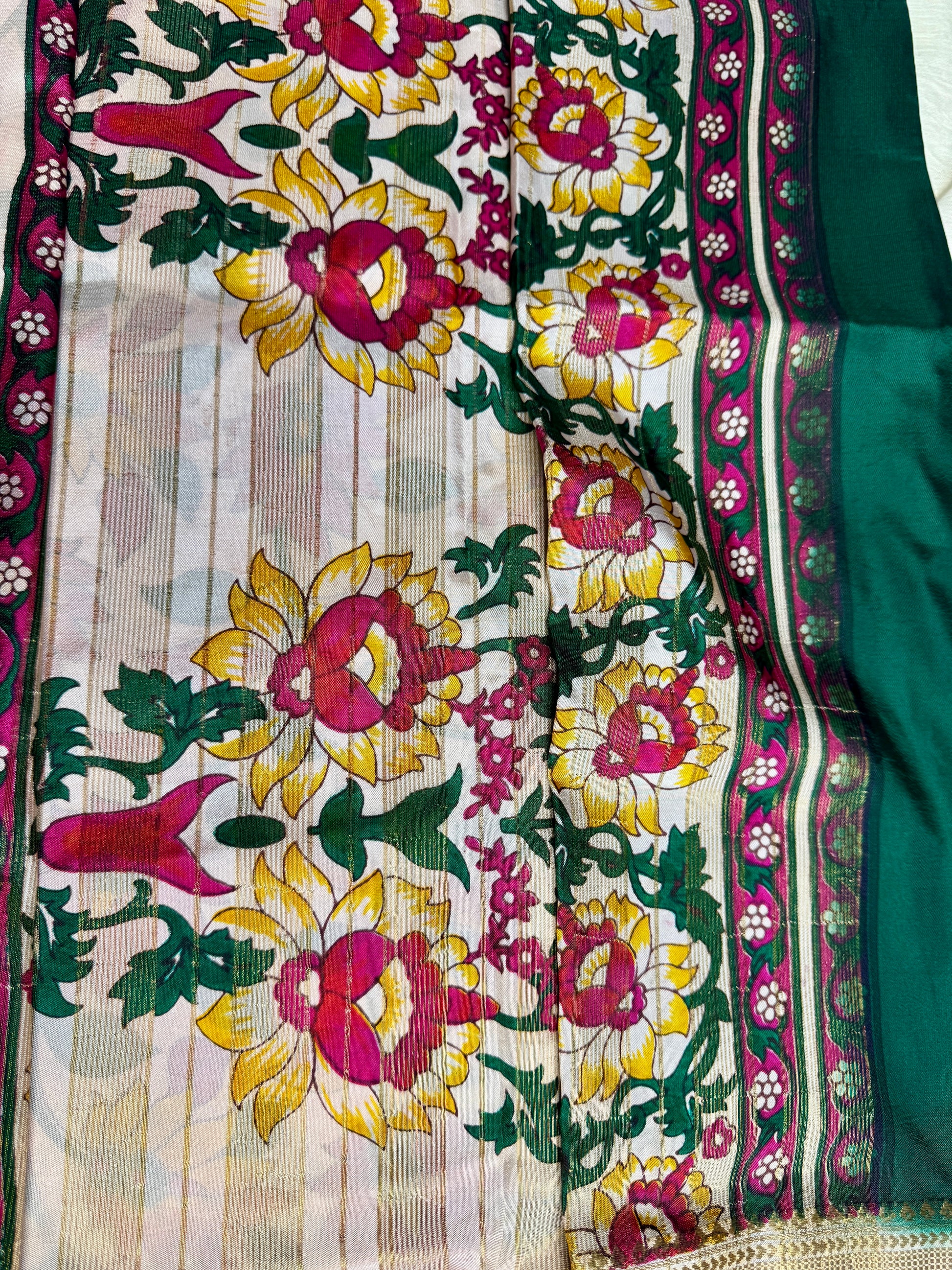 Bottle Green Semi Crepe Silk with Floral Bentex Border