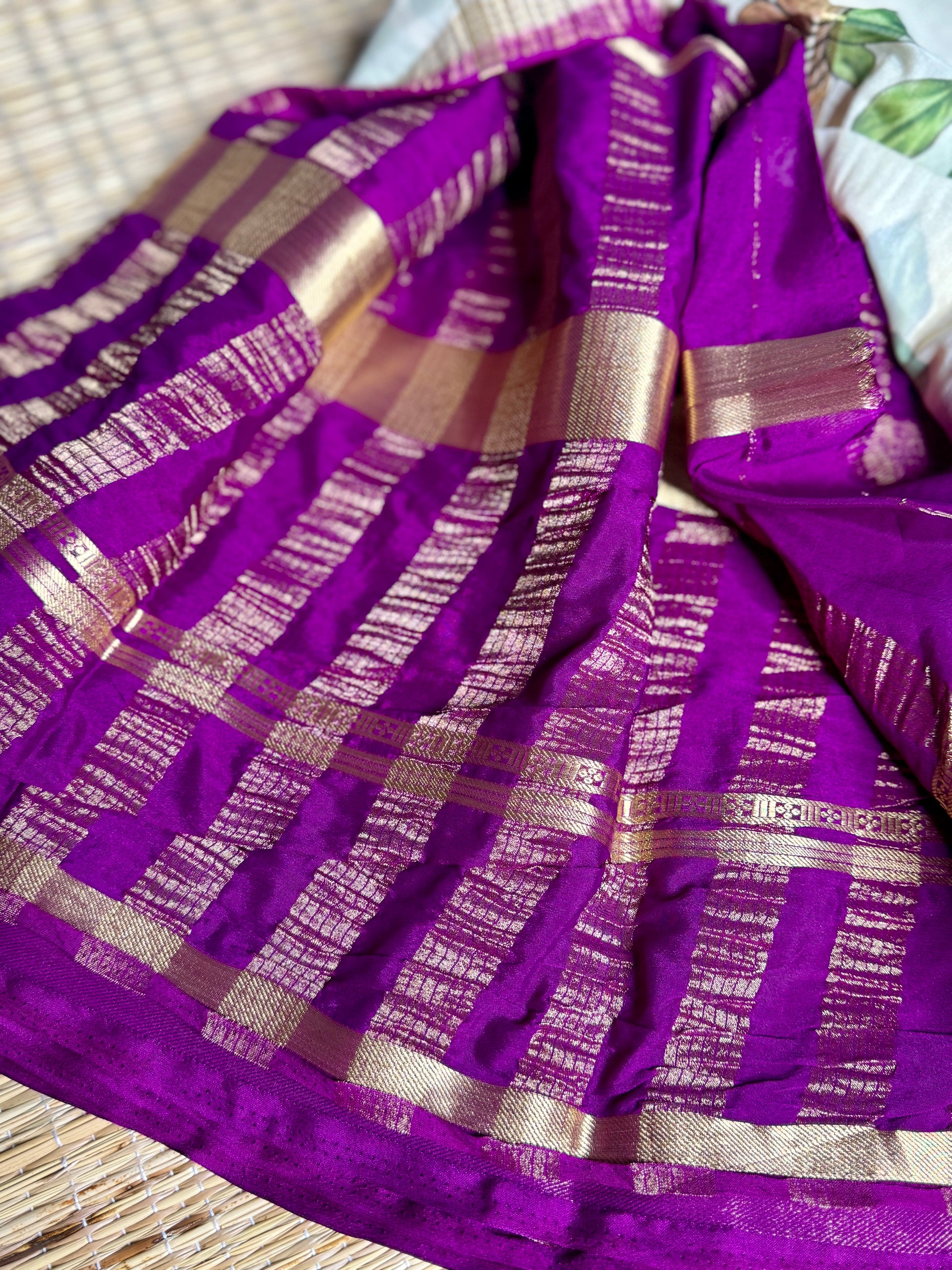 Magenta & White 2D Kalamkari Mysore silk crepe