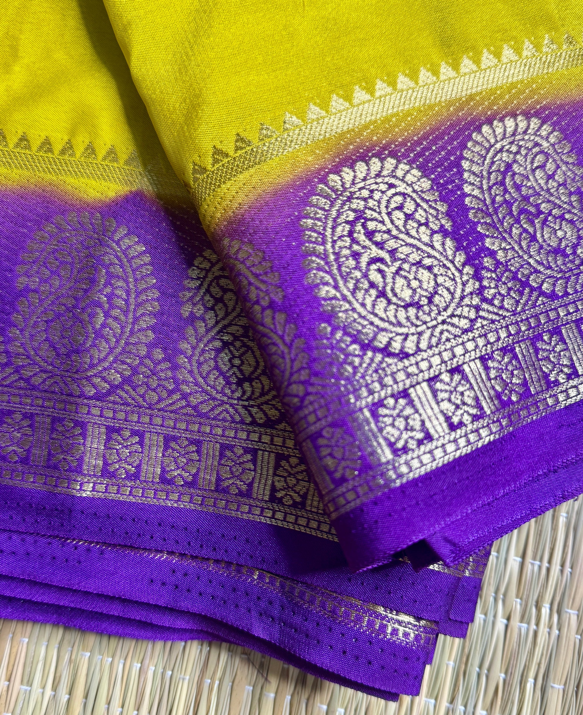 Mustard yellow & Purple contrast Semi Mysore silk crepe