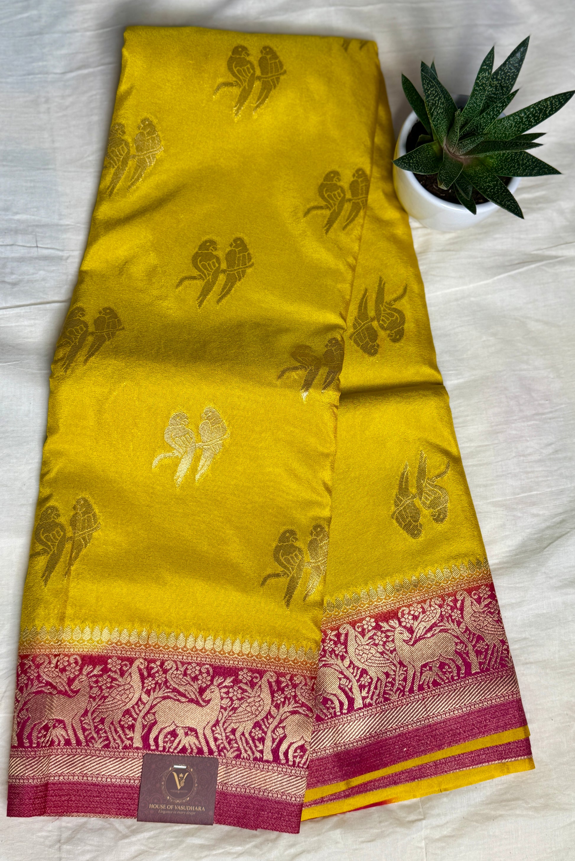 Mustard Yellow & Rani Pink Khadi Silk saree