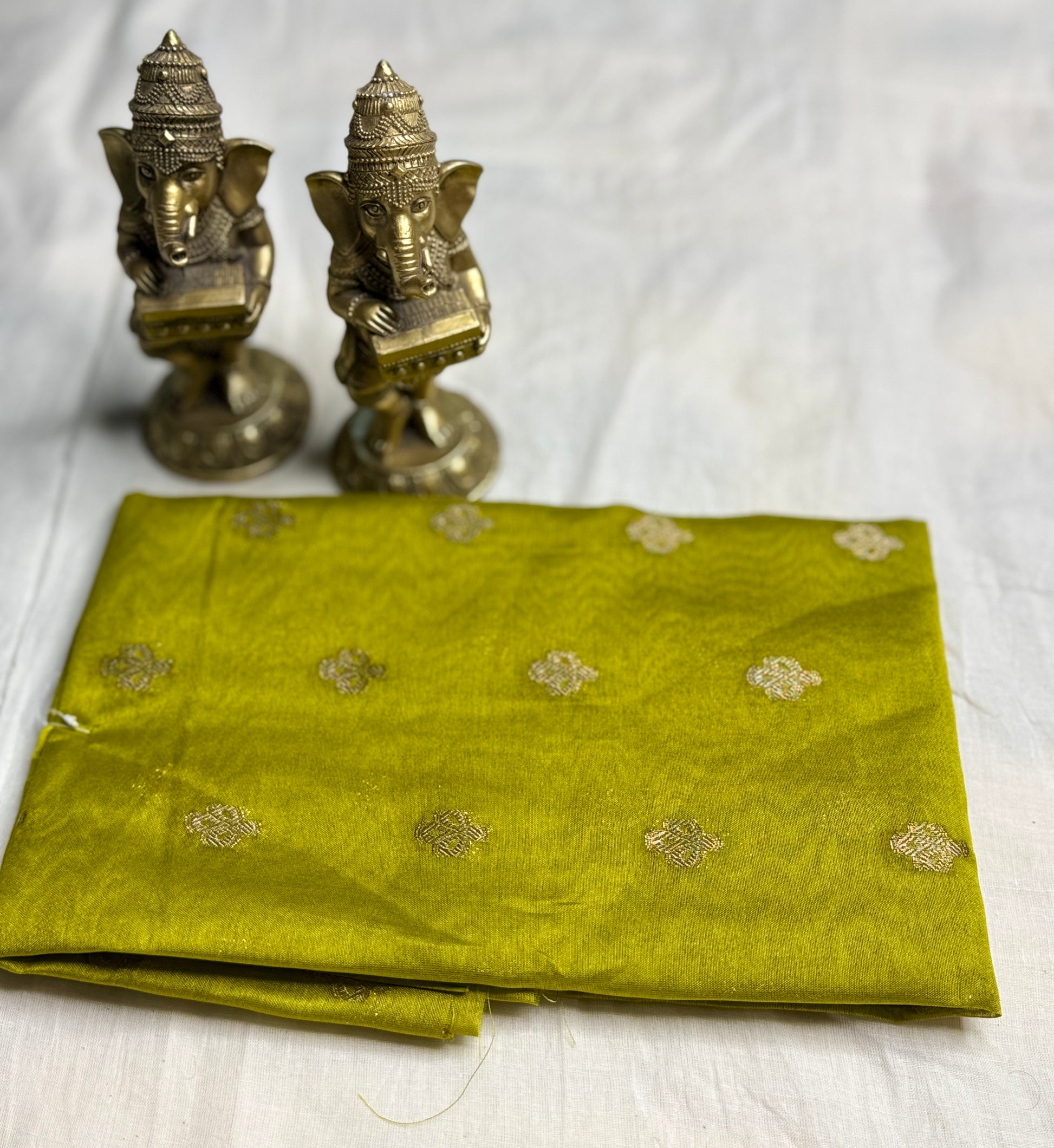 - Design : Half and Half pattern. Zari border with small checks and floral print all over the Body With checked Pallu & buttas on Blouse.