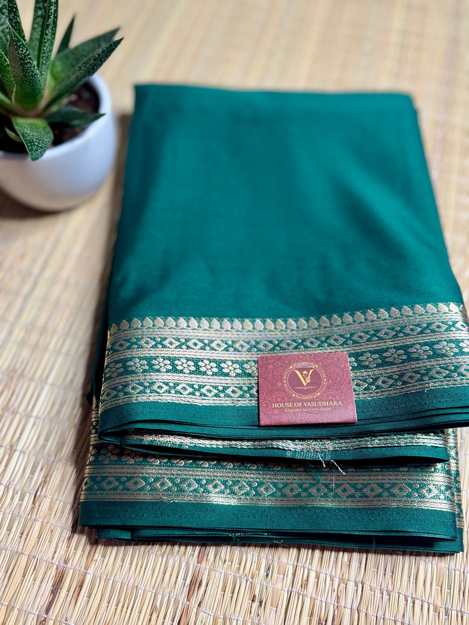 Design : This exquisite semi-crepe saree exudes timeless elegance and sophistication. The saree features an intricate zari border with traditional motifs woven in gold. The pallu is delicately adorned with subtle gold stripes that enhance its graceful flow, adding a refined touch to this graceful drape.