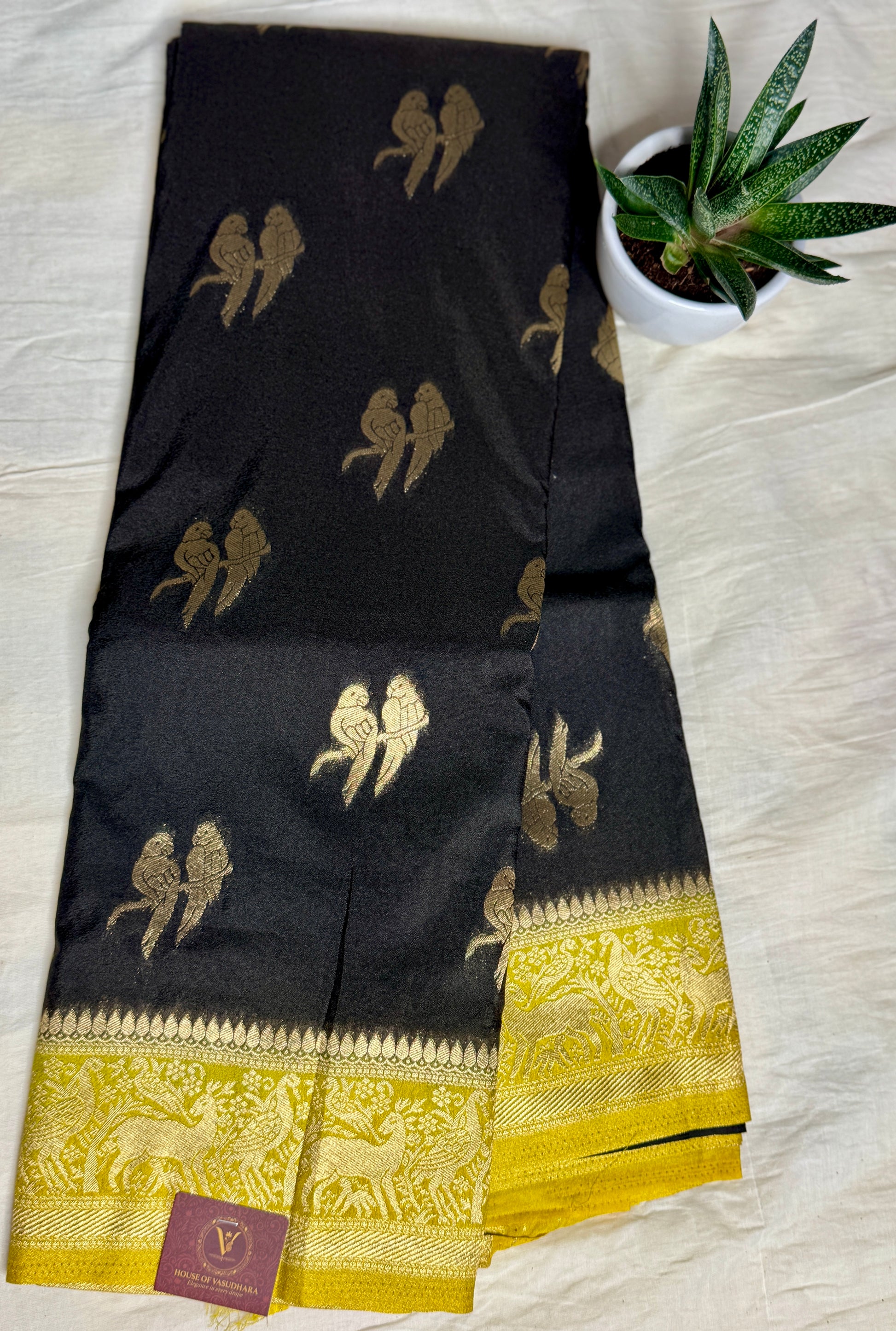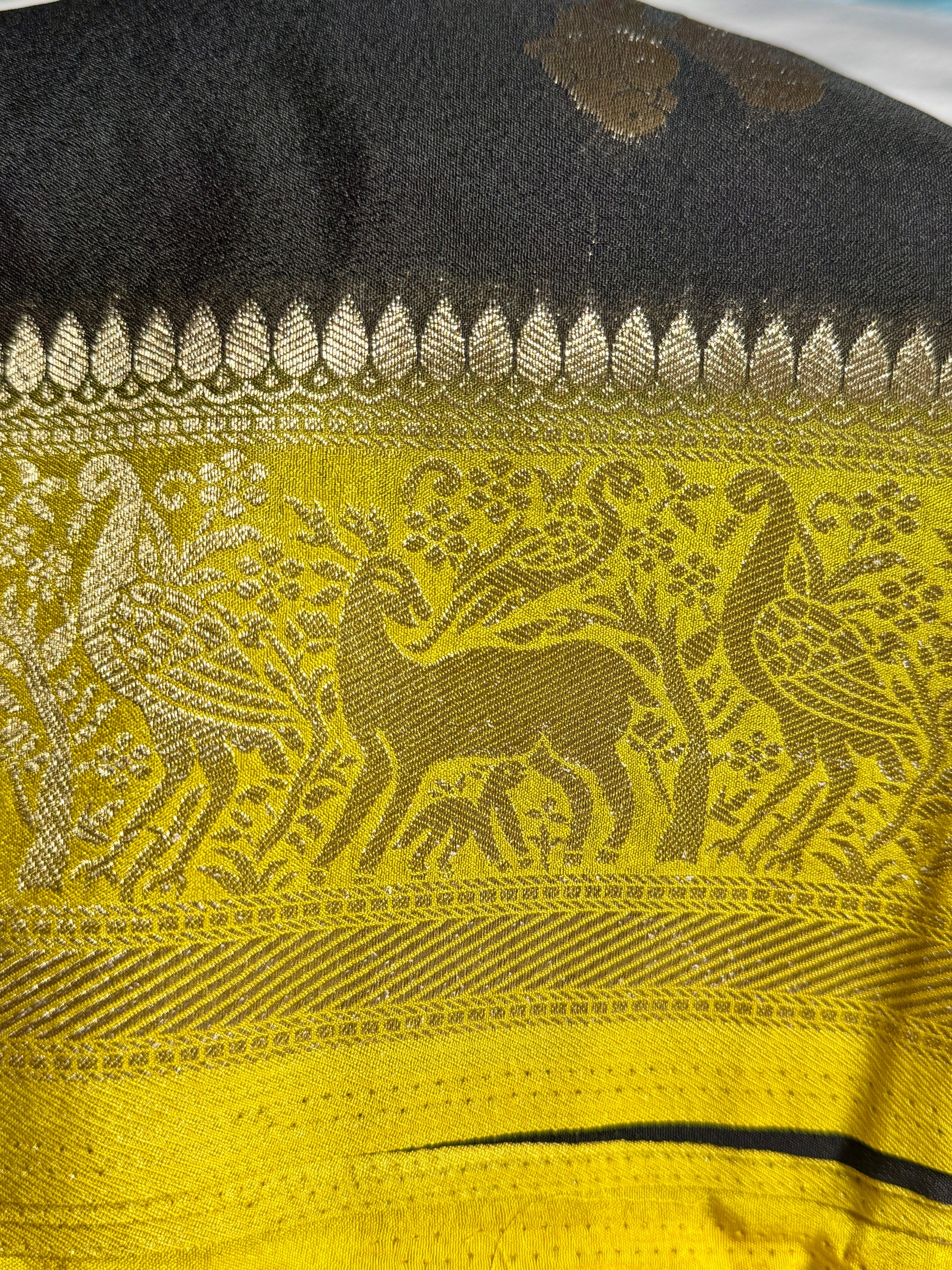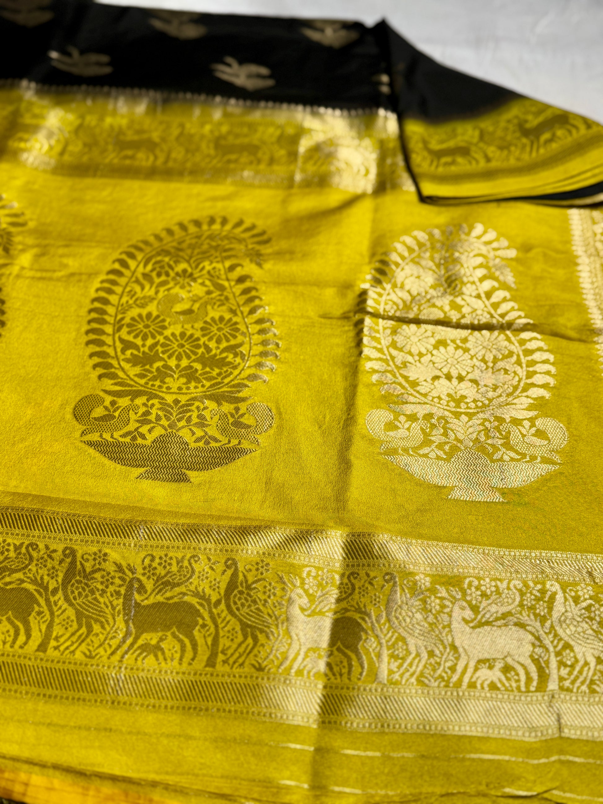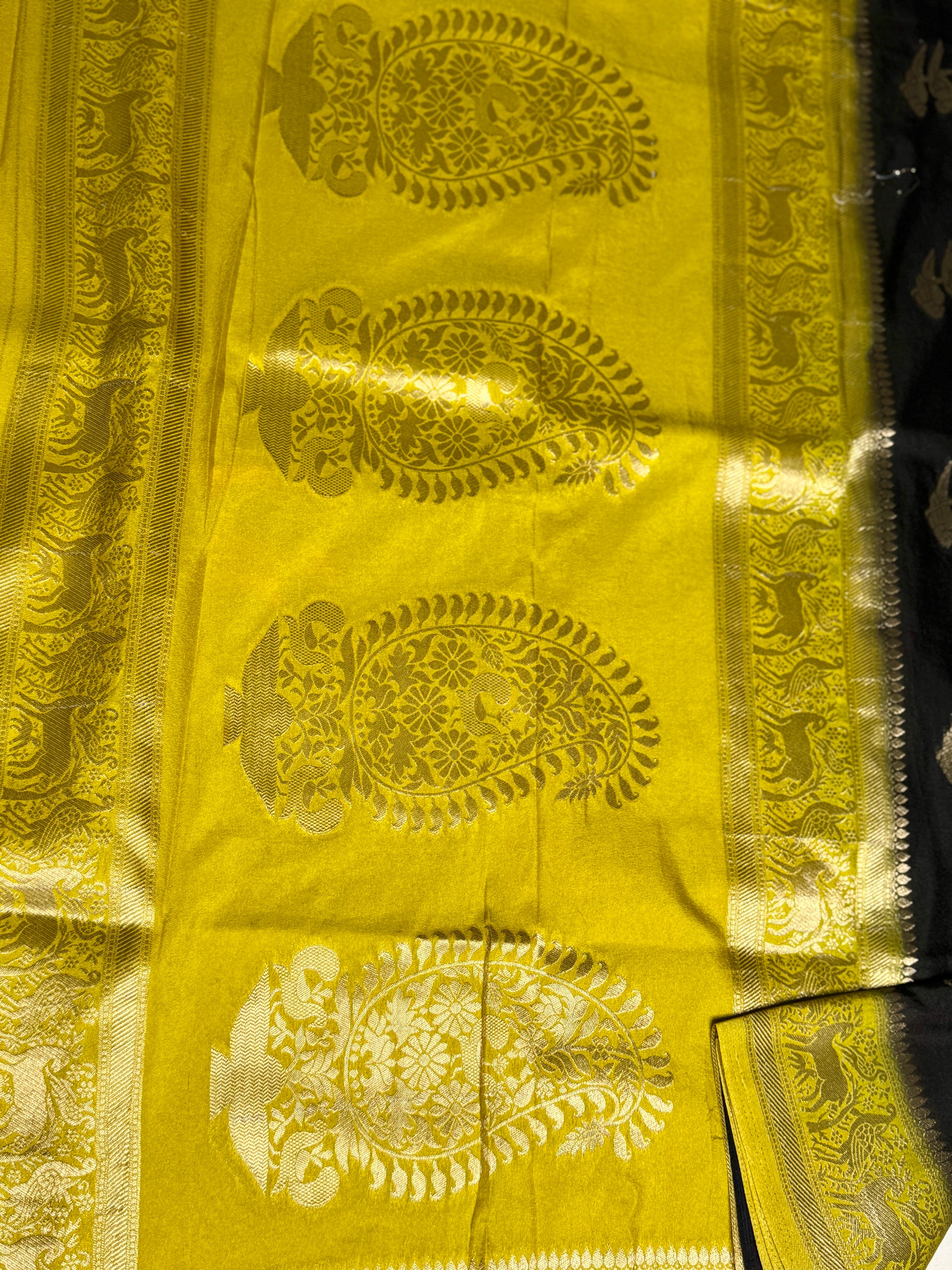 Black & Mustard Yellow Khadi Silk saree
