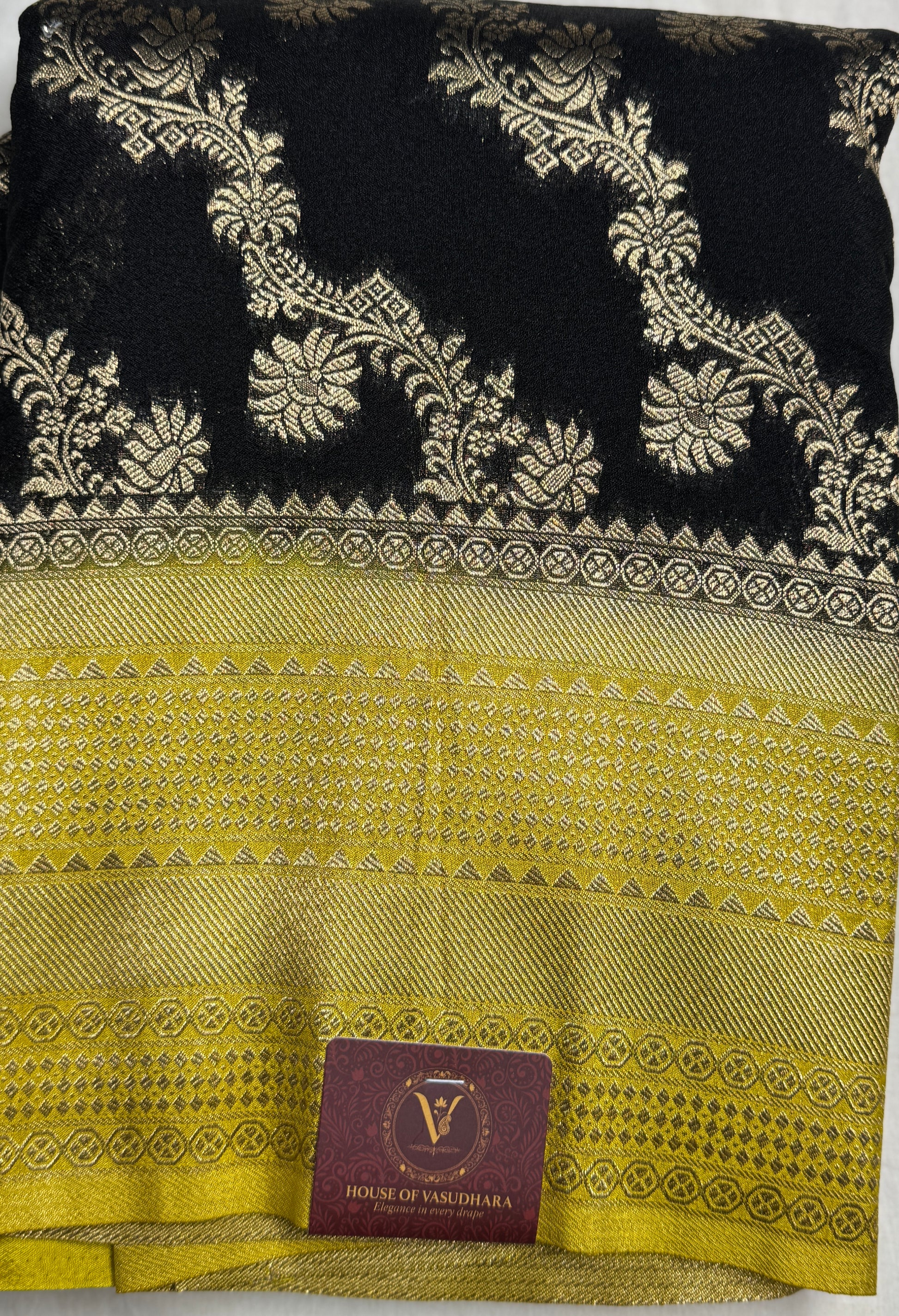 Black& Mustard Yellow Jaal pattern Khadi Silk saree