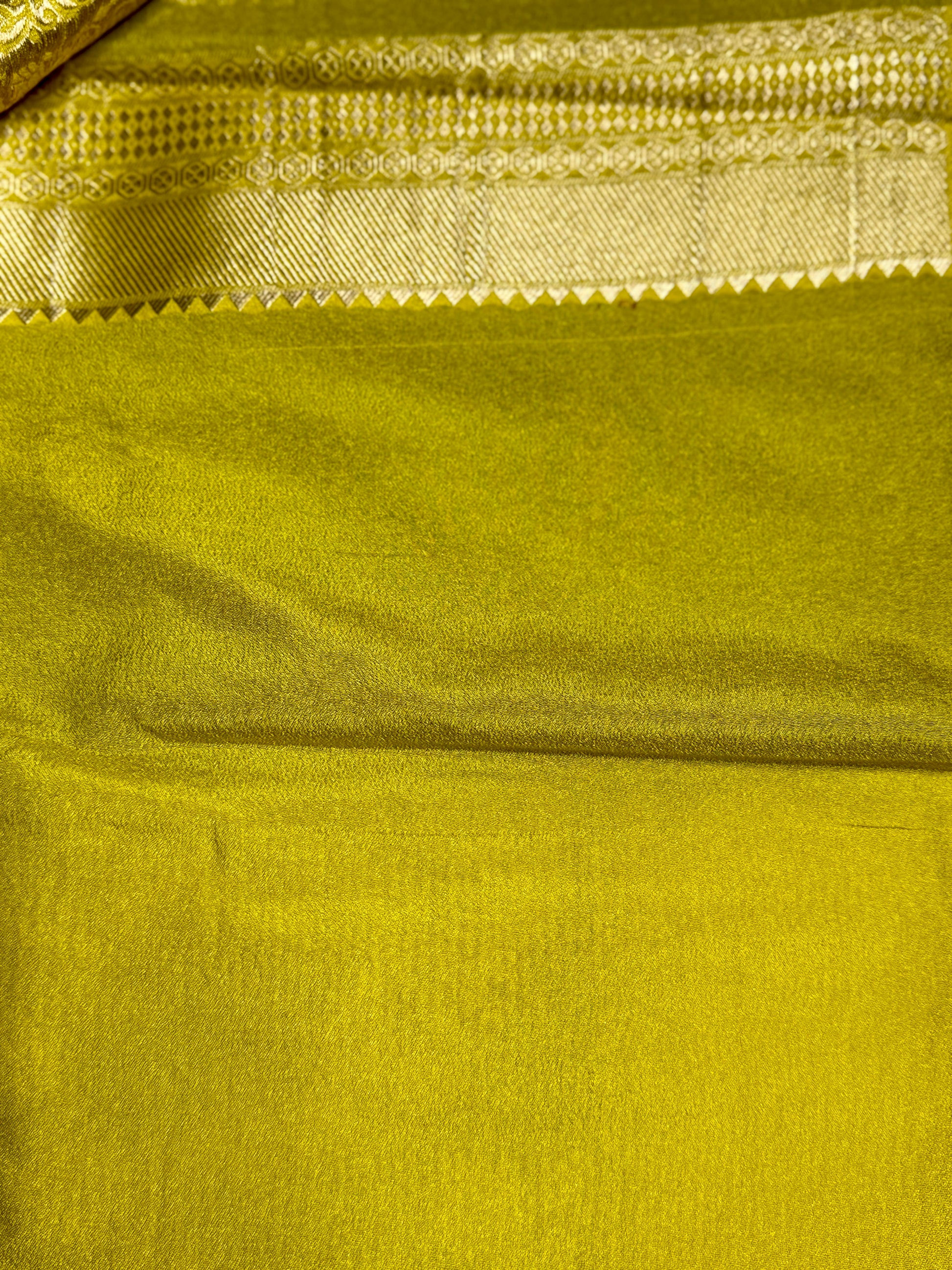 Design :The body is adorned with golden floral zari vines(Jaal Pattern) with temple Border. Pallu showcases classic mango and paisley motifs in shimmering gold .