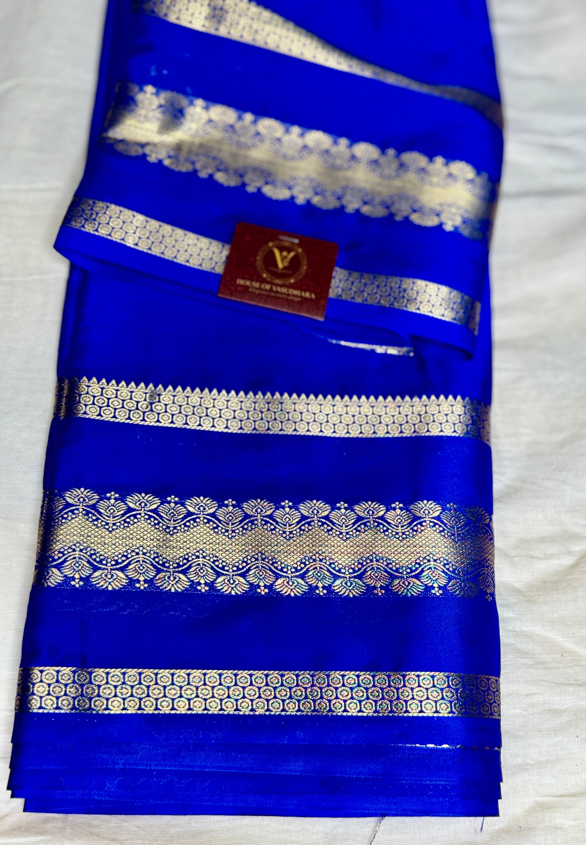 Channel timeless tradition with this rich Royal semi crepe silk saree from House of Vasudhara. Crafted to perfection, this saree exudes festive elegance and ornate golden zari border, making it an ideal pick for weddings, rituals, and special celebrations.