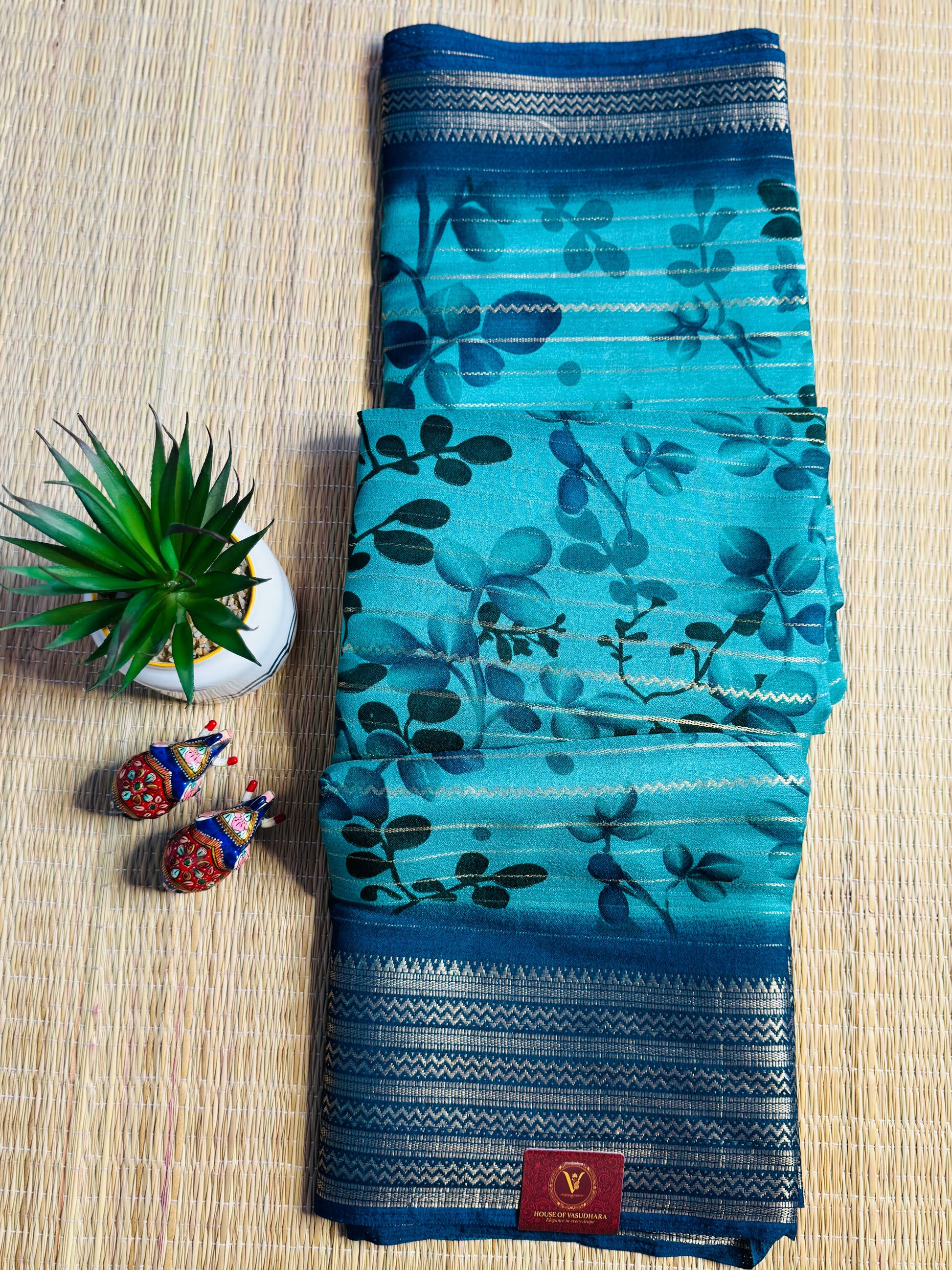 This saree is a celebration of delicate artistry — where every leaf and petal is intricately crafted , echoing the finesse of traditional Meenakari enameling.