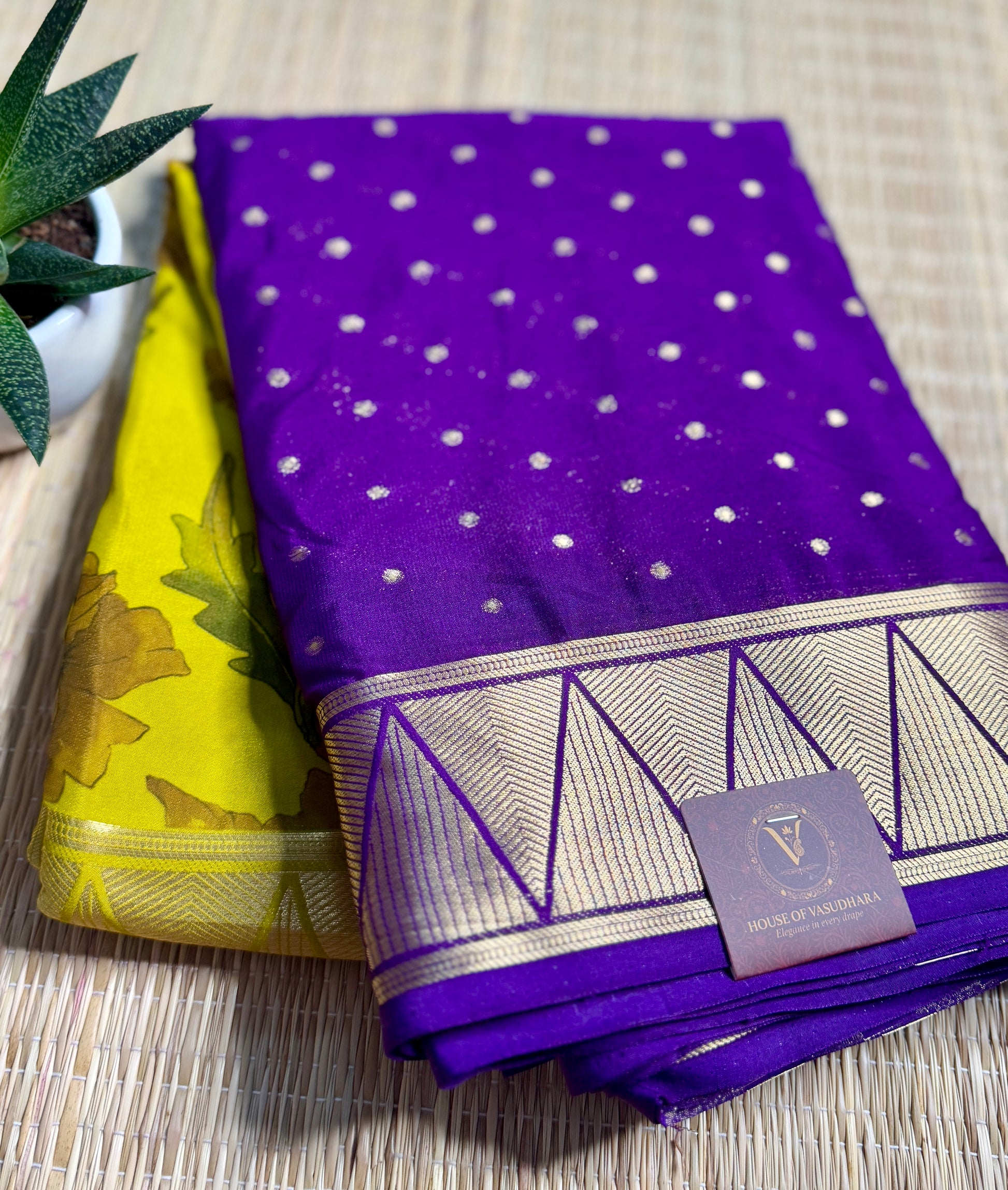 Yellow & Purple Half & Half Kalamkari Mysore silk crepe