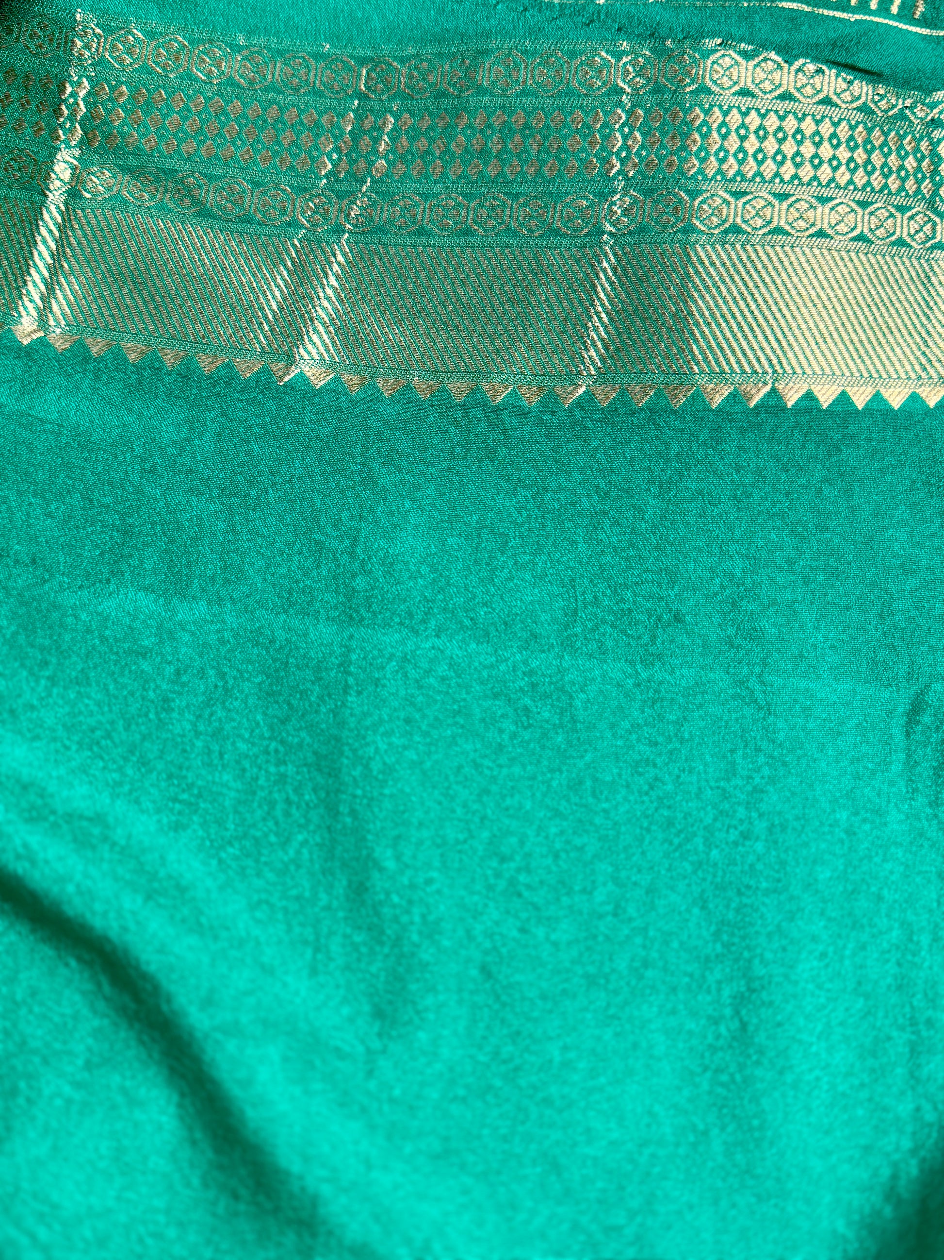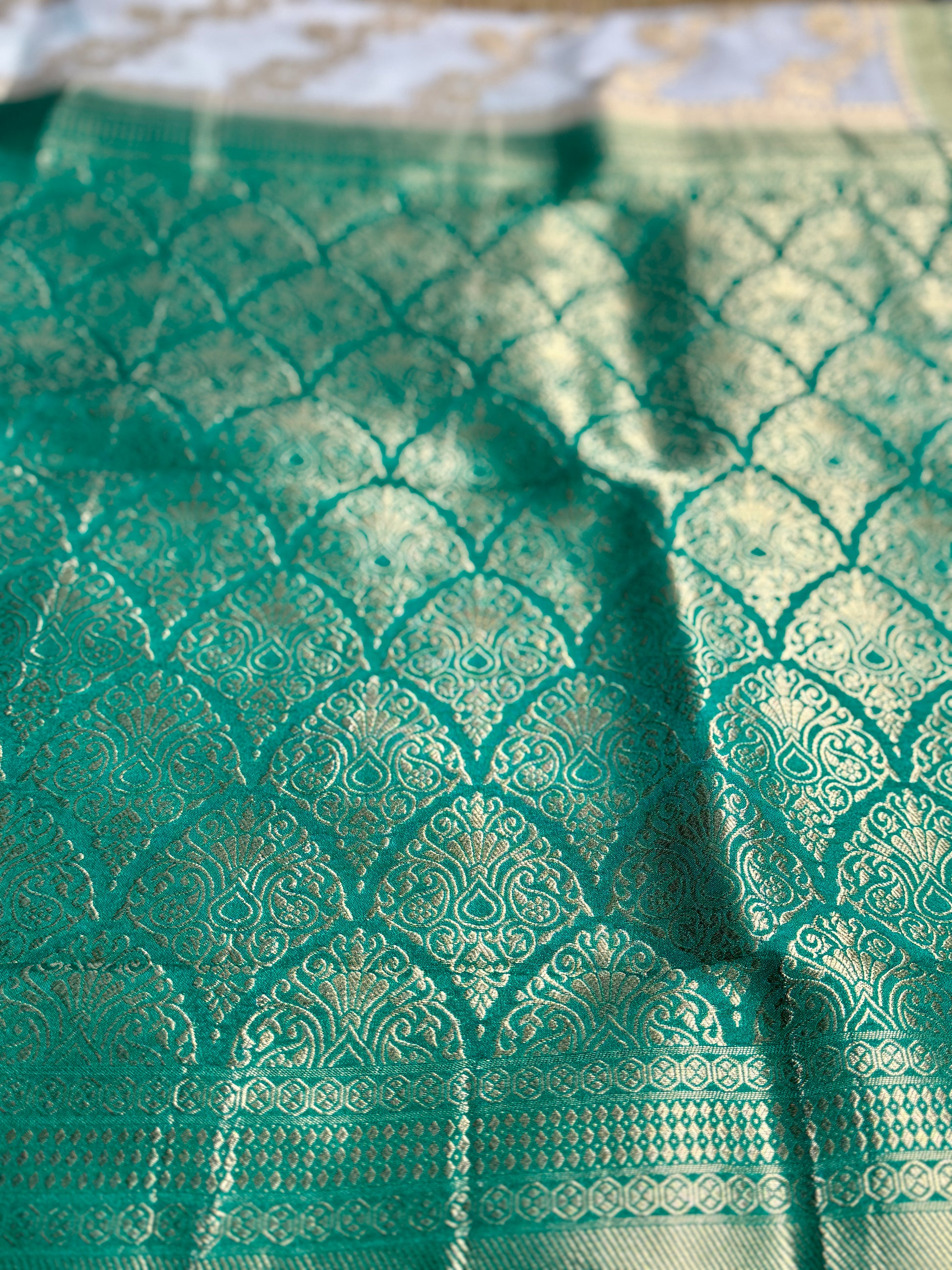 White & Green Jaal pattern Khadi Banarasi Silk saree