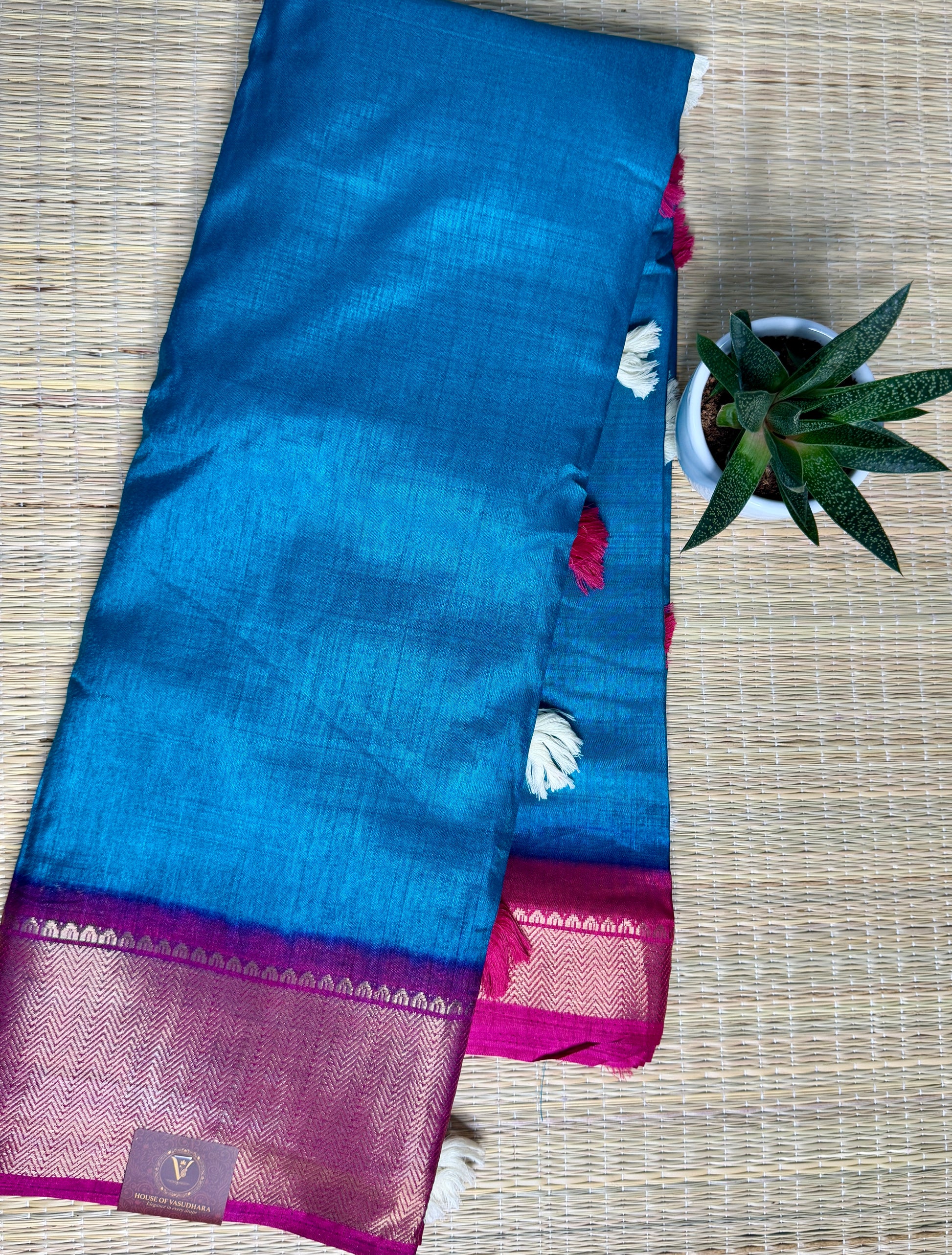 Pallu : The pallu mirrors the border’s refined design and ends with playful tassels